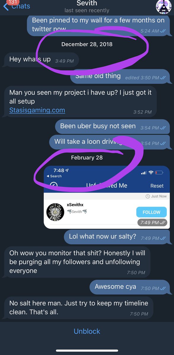 @xSevithx Nah took 2 seconds still have your sorry ass blocked in telegram after spending a year begging me to endorse your bs project or teach you. Don’t try the lame approach to say I seem salty you are rekt af bch everyone in my discord knows we are lol’ing at your weak ass DM’s 😈👉🍆 pic.twitter.com/Zqjy2eBJS5