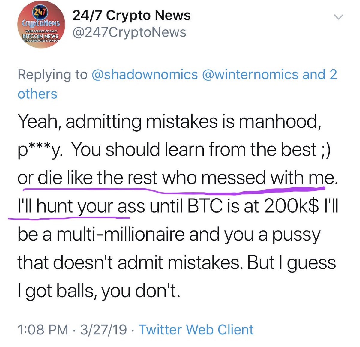 Not sure exactly how @APompliano destroying this mans life = go after @shadownomics with racist attacks at random but it does seem to be a thing for having accurate info public that was supposed to help people avoid bs from people like POMP who have their own agendas👁️ #footprint pic.twitter.com/Czje6GT5lu