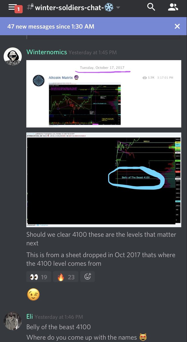 Guess #shadowarmy actually owes @winternomics & his #wintersoldiers some thanks for that 4100 #bellyofthebeast level identified back in Oct 2017. Never hurts to have a roadmap before you take a trip ๐ #btc #roadmap #battleoftheforks #forkwars ๐ pic.twitter.com/DYn7PQtv4k